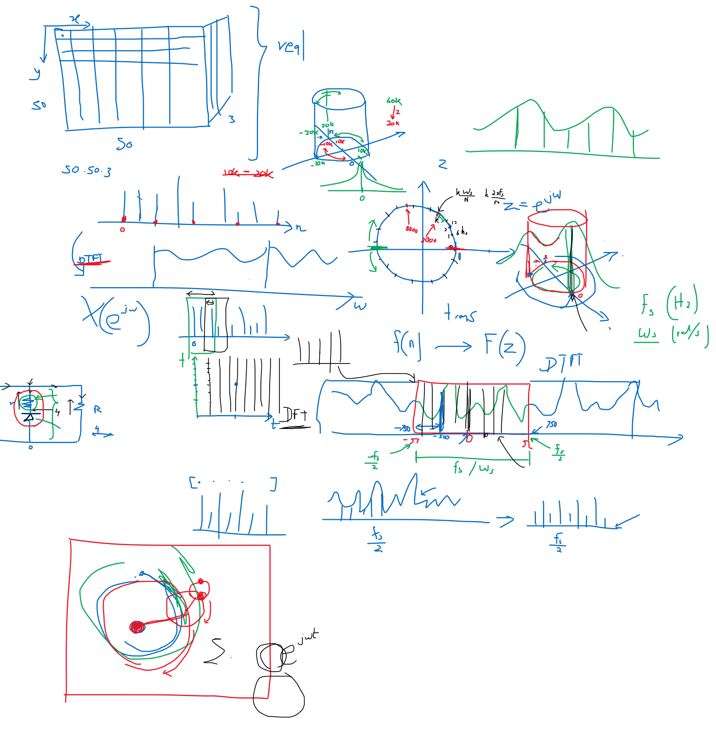On the last day, I did a special session, where I showed a complete overview of DSP practically. I showed how enough circles rotating on top of each other can create any 2D image, basically the Fourier theorem. Then I took a song, filtered it in different ways and showed what happens. I also talked about filtering a 2D image, giving a glimpse of what happens in higher dimensions.