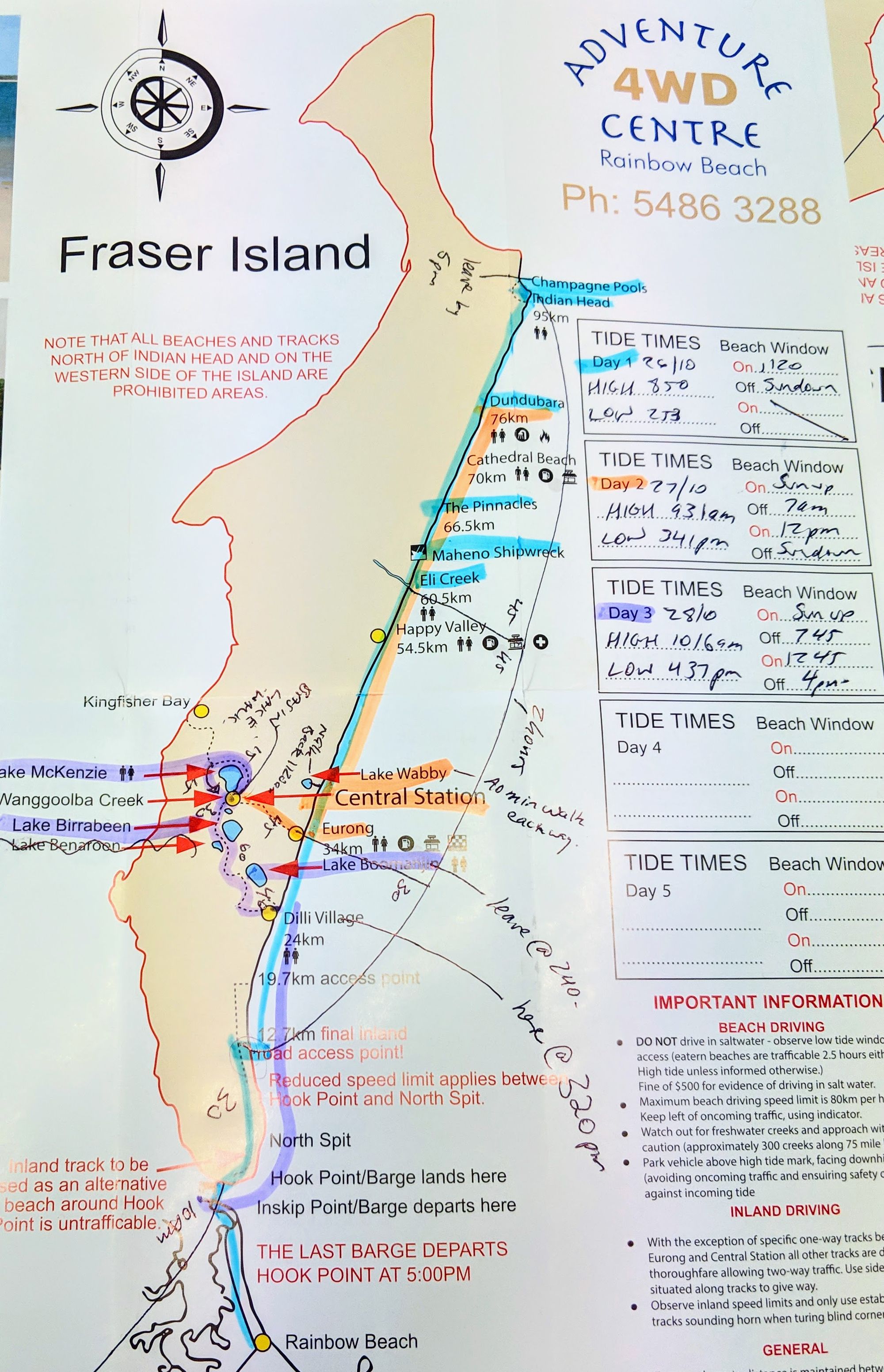 Week 17/24 . 2 nights camping, 3 days, 4WD trip to the largest sand island in the world. Huge and hue-ful rainwater lakes, shipwrecks, drive through rain forest, sunrise breakfast and French camping food.