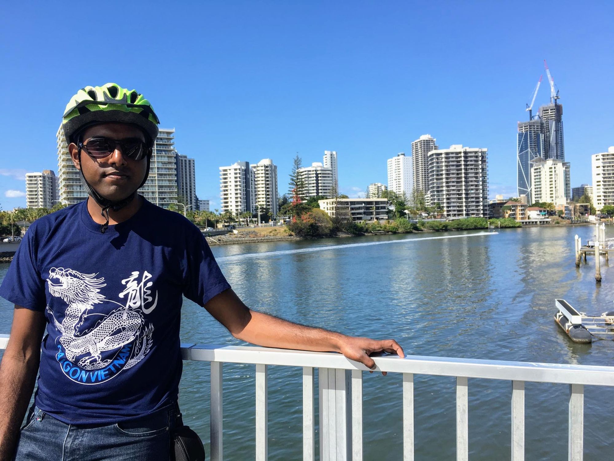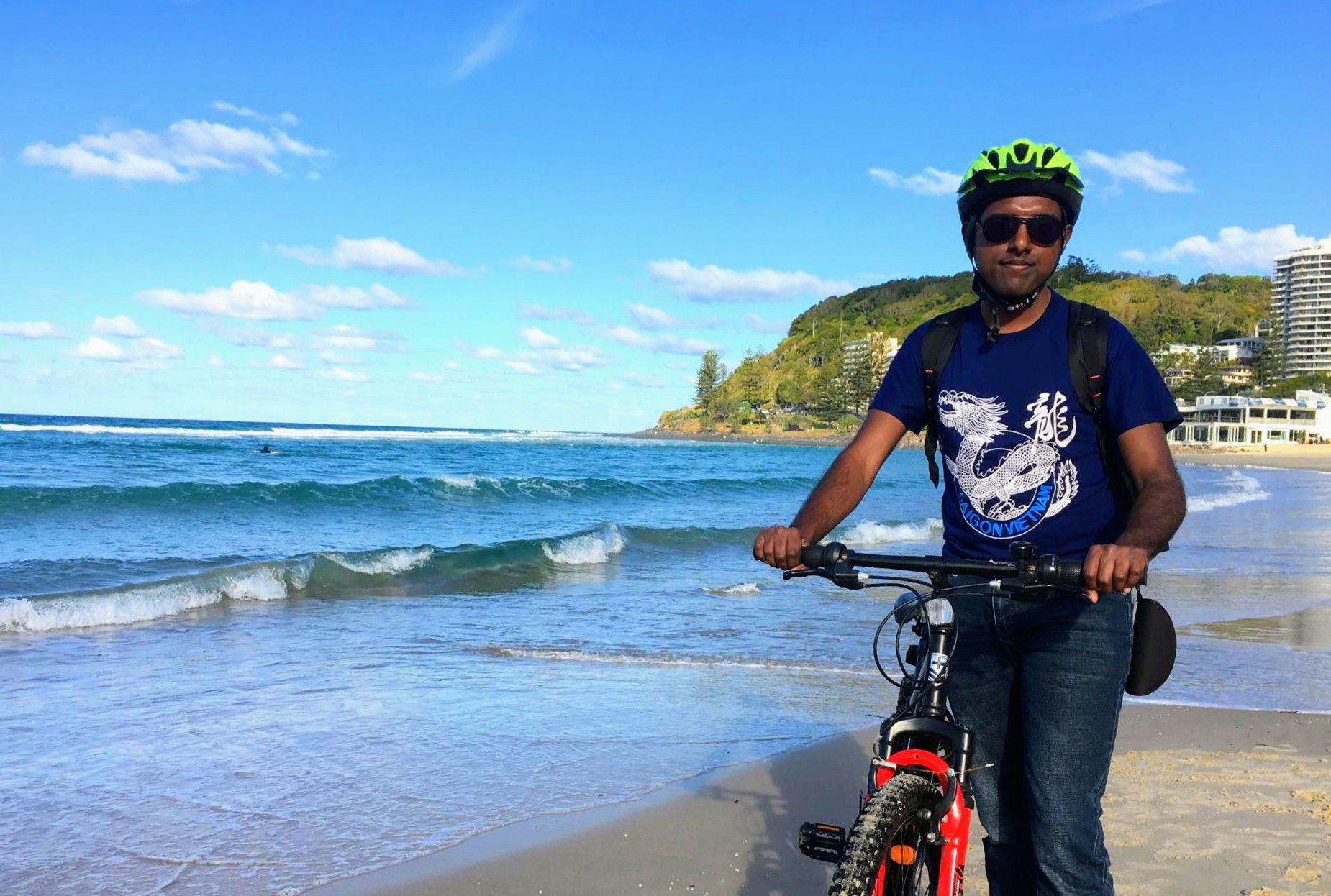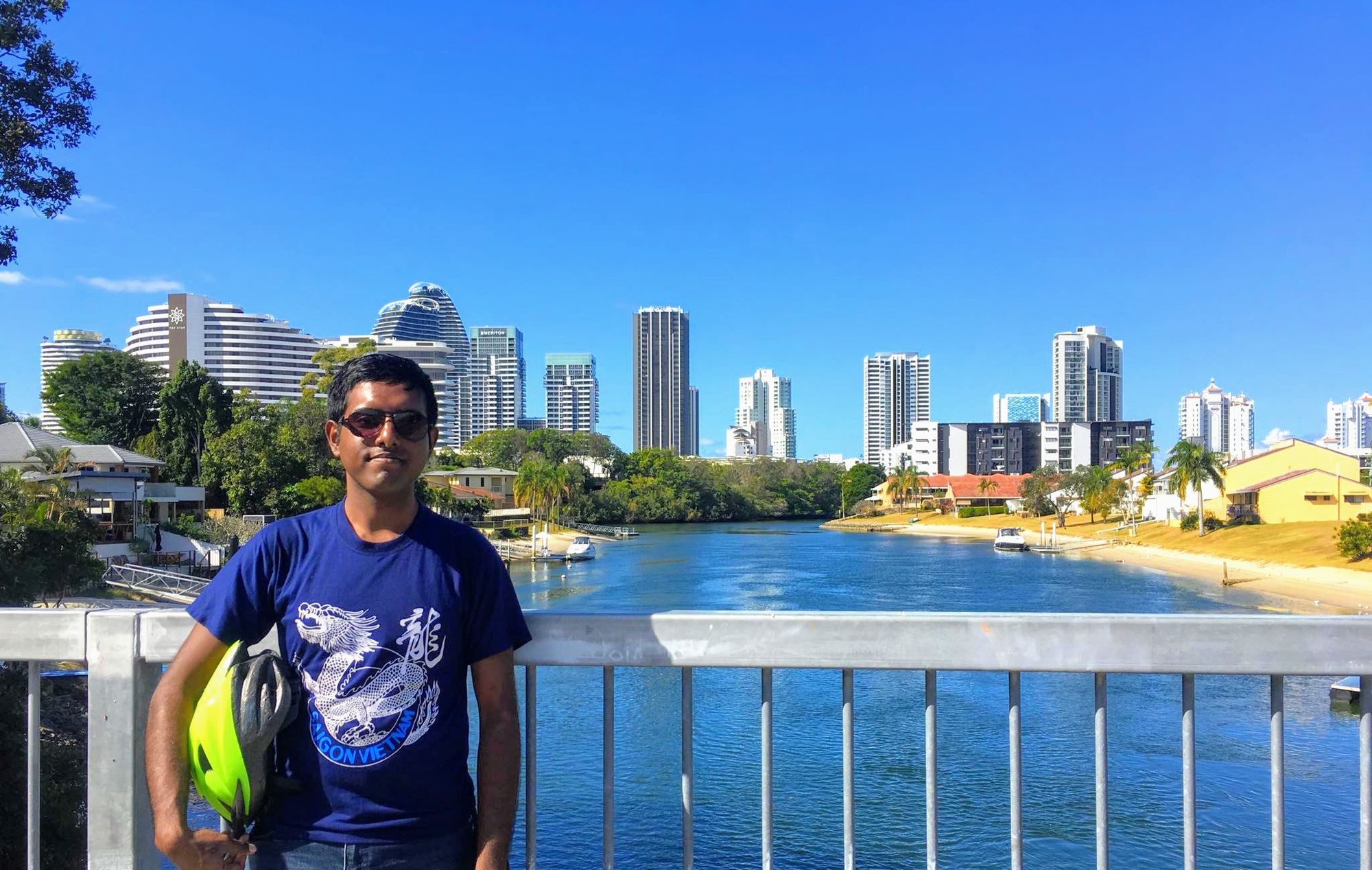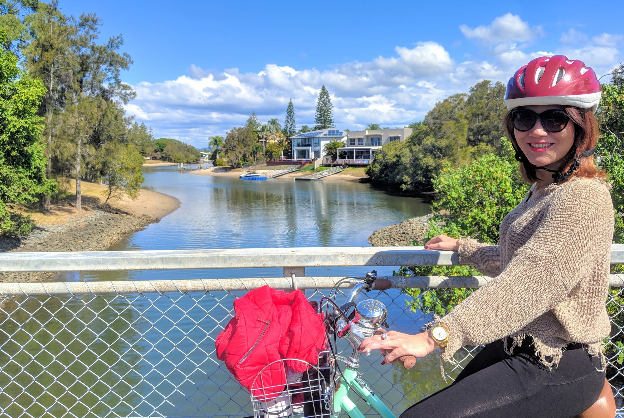Linny (My Linh Hong - the girl who took me around Saigon, Vietnam)’s friend arrived in Brisbane for a business visit. Linny asked me to take care of her. I took her around Gold Coast on a bicycle.