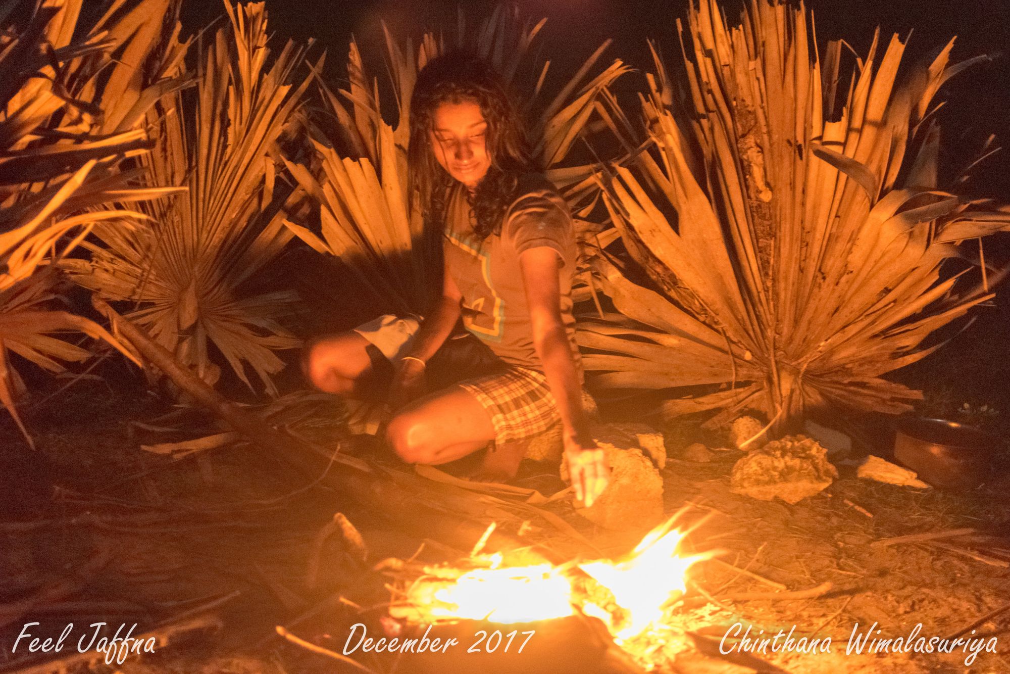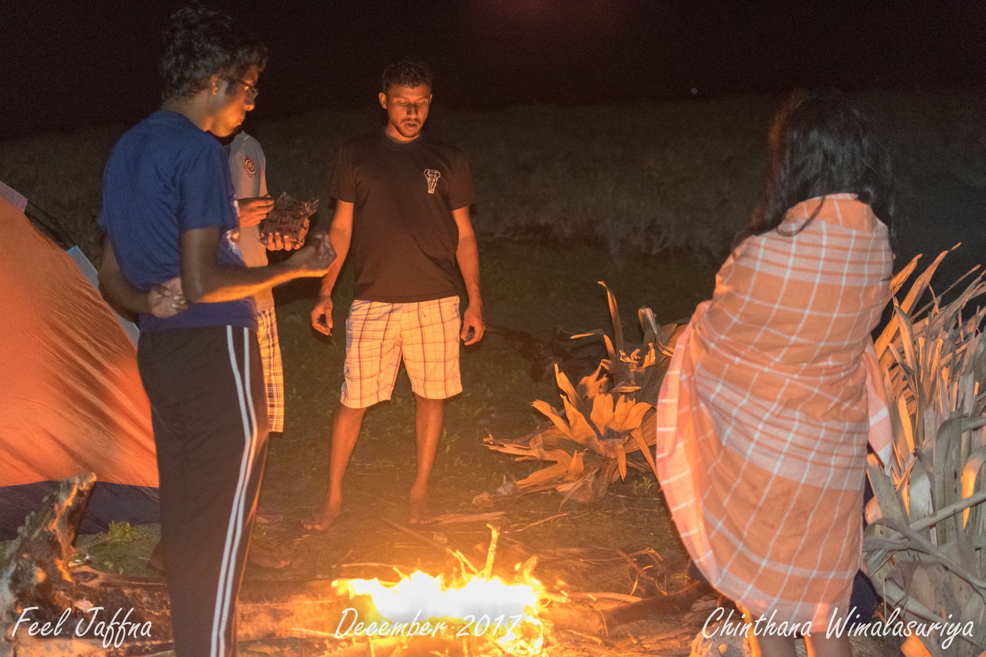We camped by the Delft beach, right next to the cemetery, since the cemetery had a toilet. We had forgotten to bring the sausages, leaving them in the freezer at my home in a hurry. Chinthana and I went around the entire island searching for any fish to cook. As it was New Year’s Eve, fishermen hadn’t gone to the sea. After about 2 hours of walking, a stranger on a bicycle noticed us going round the island and inquired. It turned out that he was a fisherman and had some fish in his freezer. We went to his home, bought some for a good price.