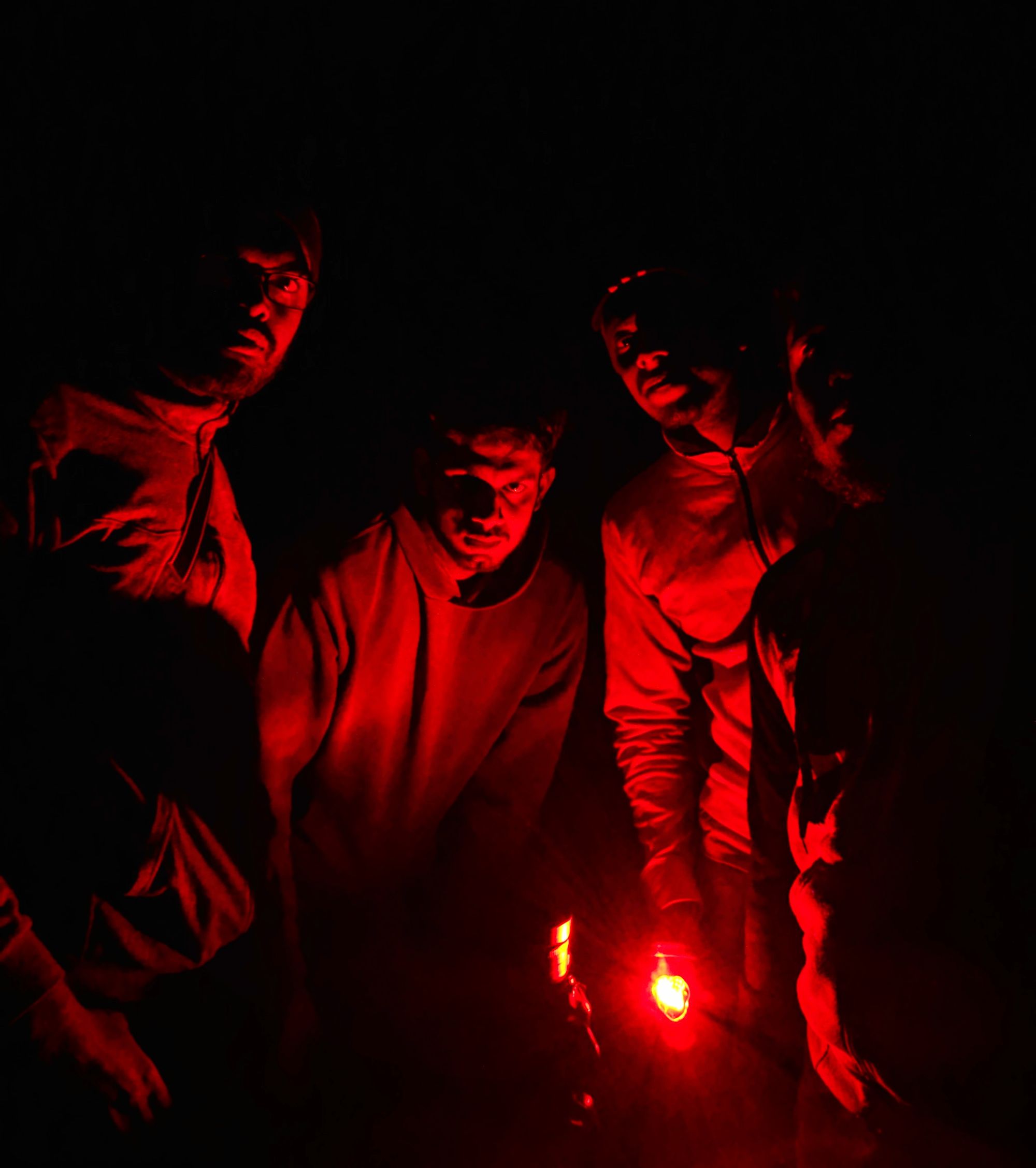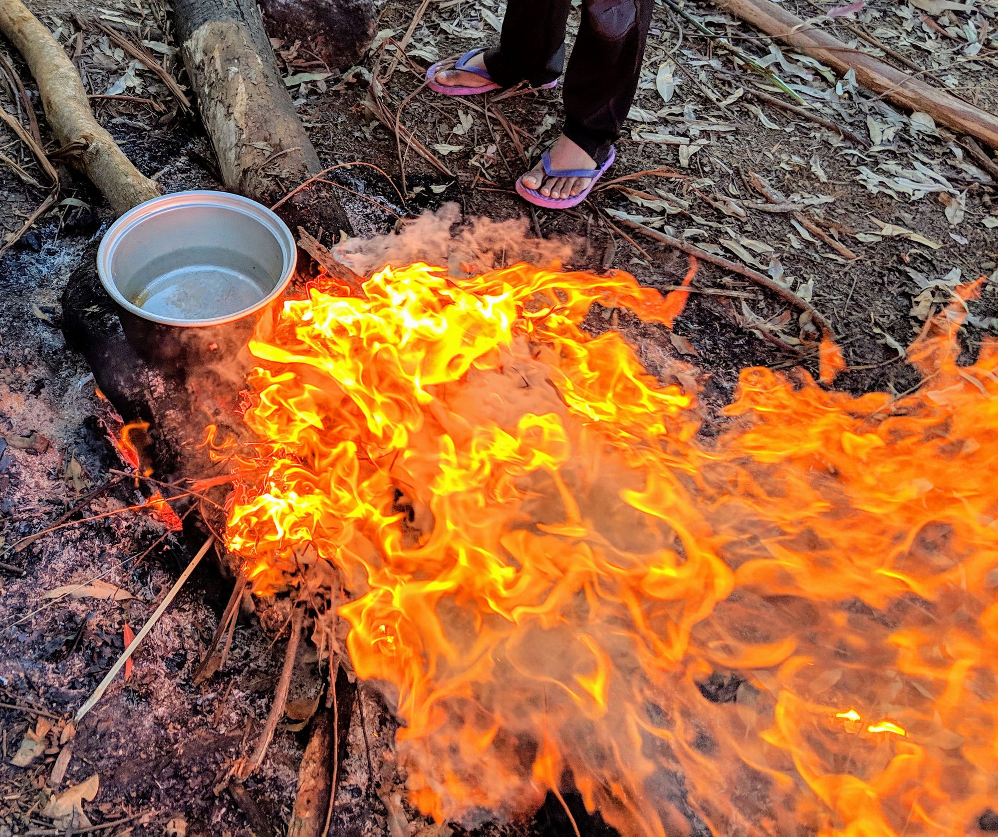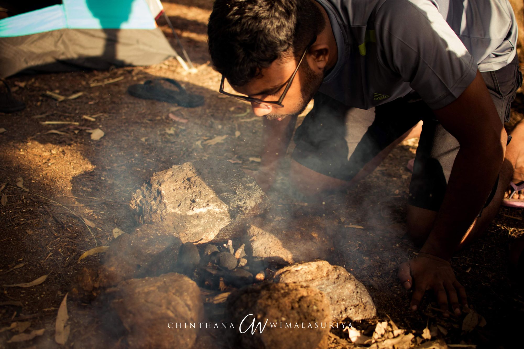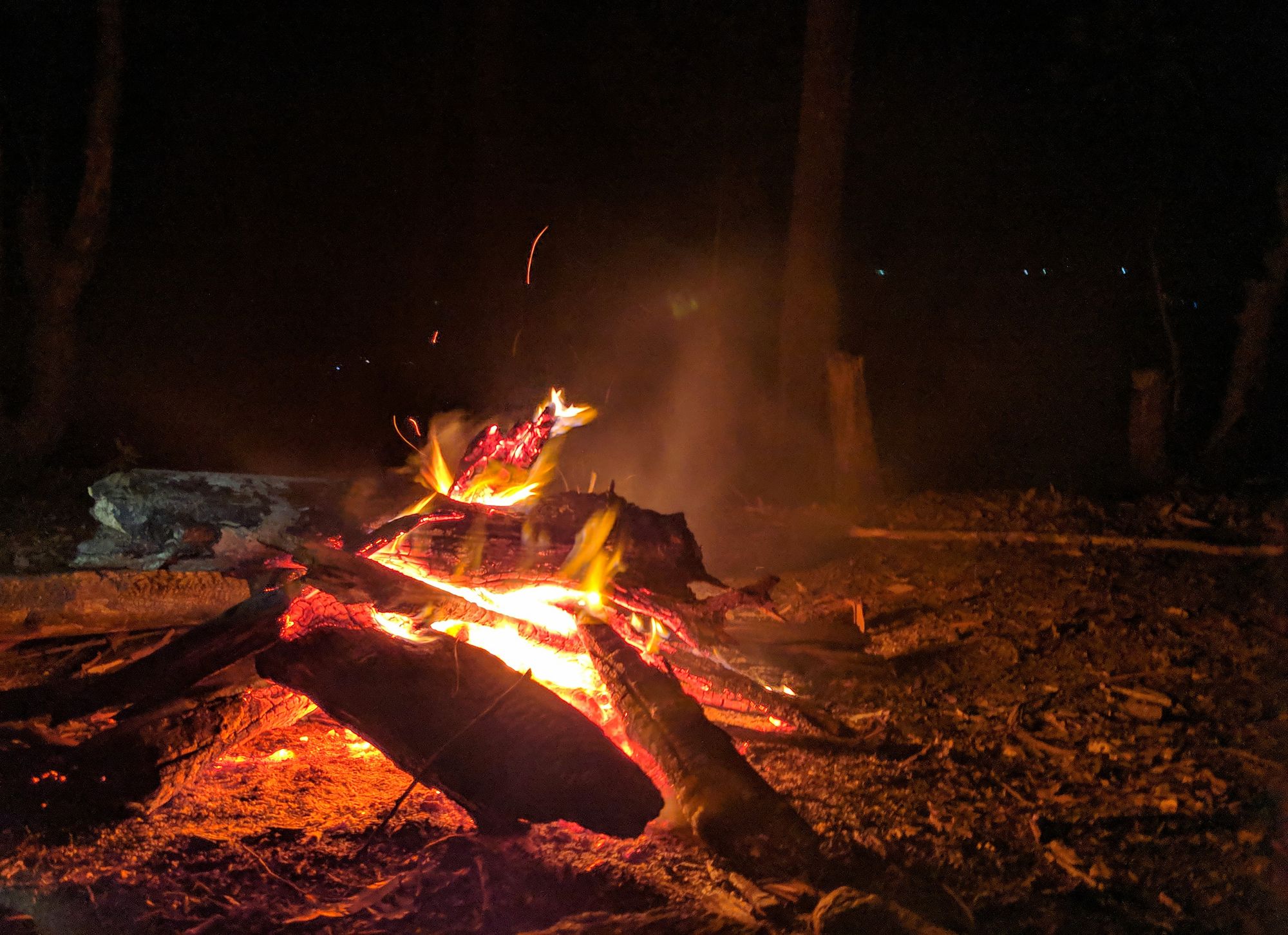 Cooking chicken on a makeshift grill. Red light (last) to accustom our eyes to see the stars