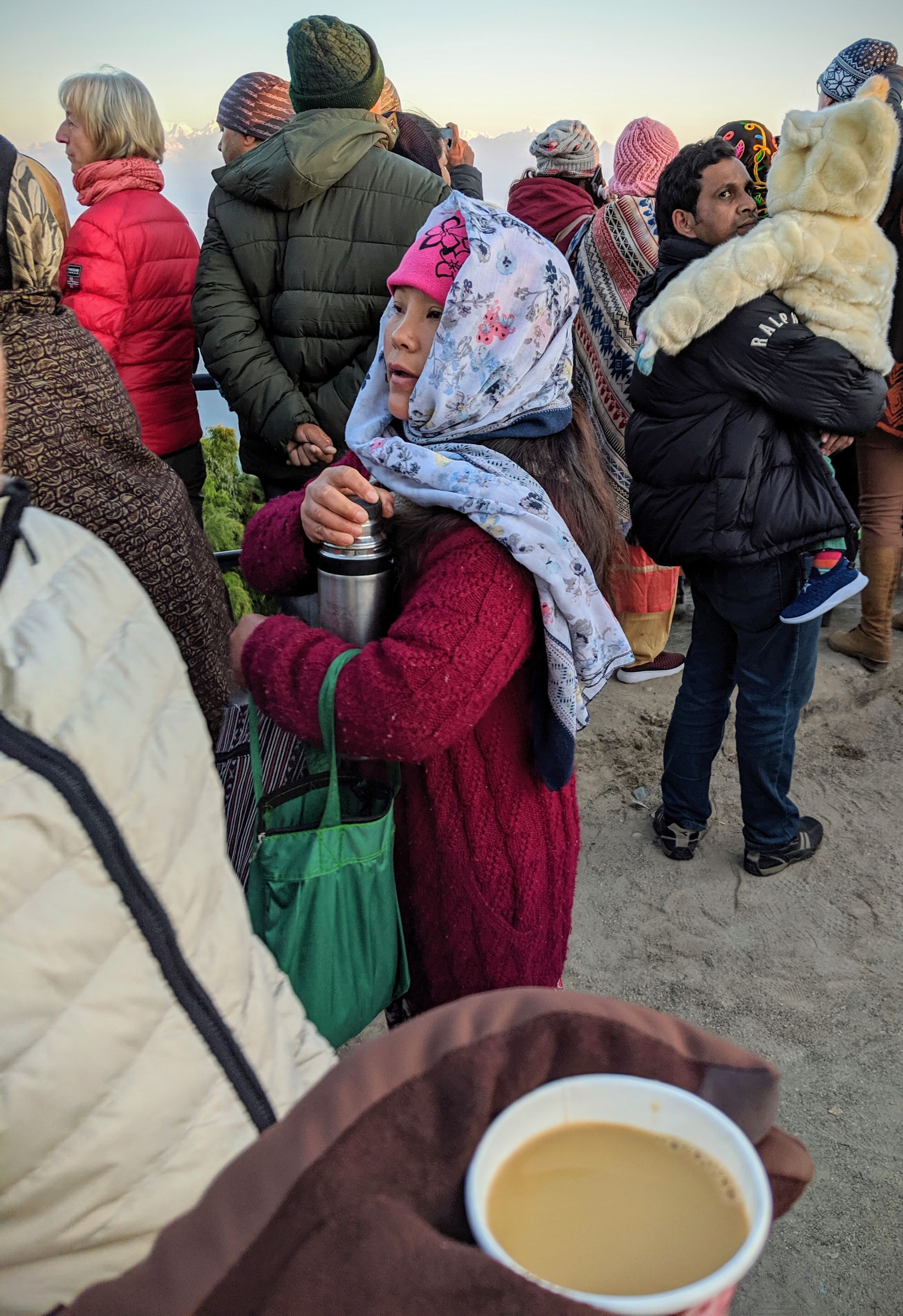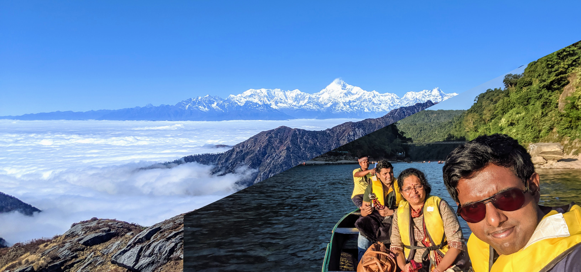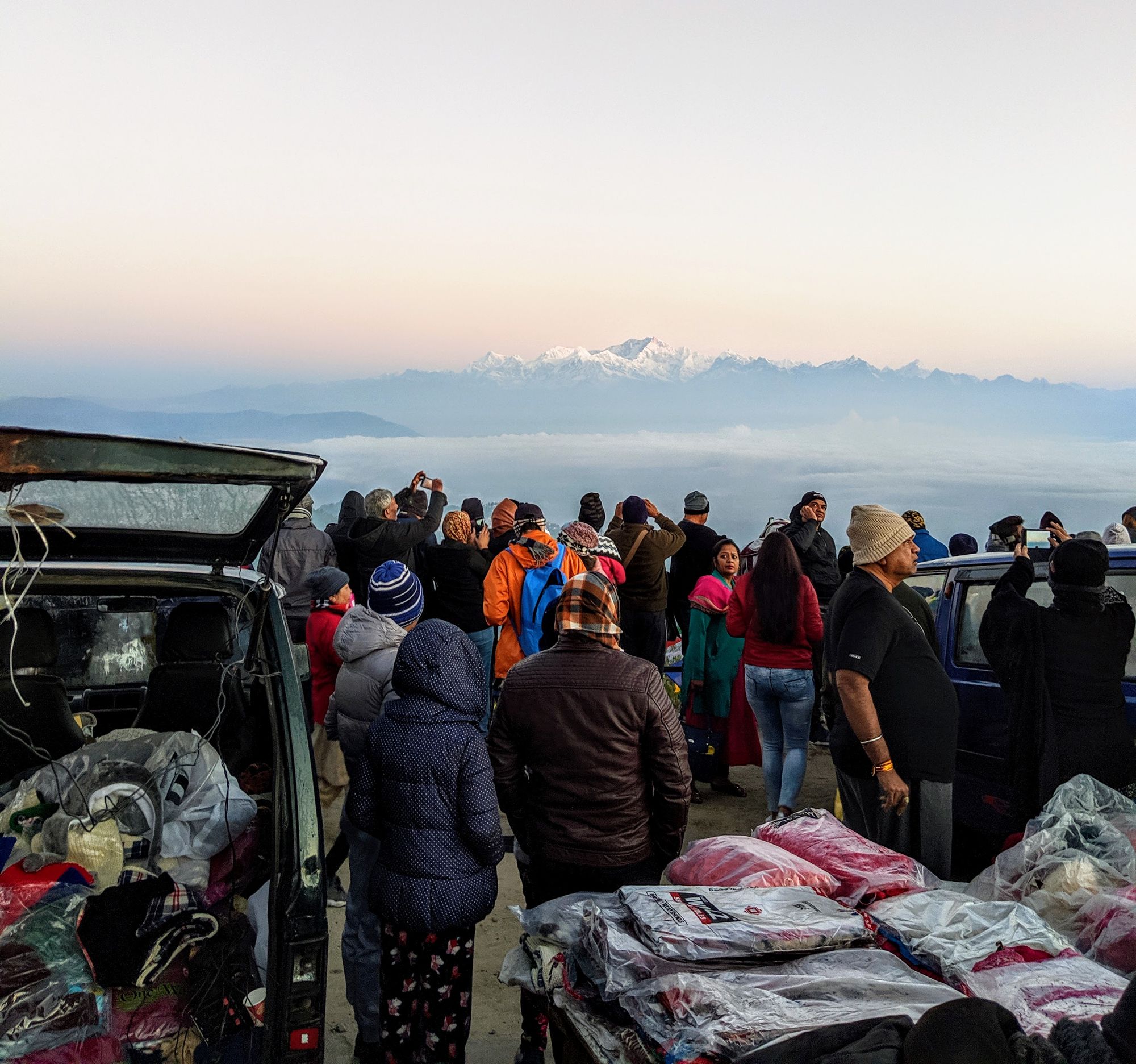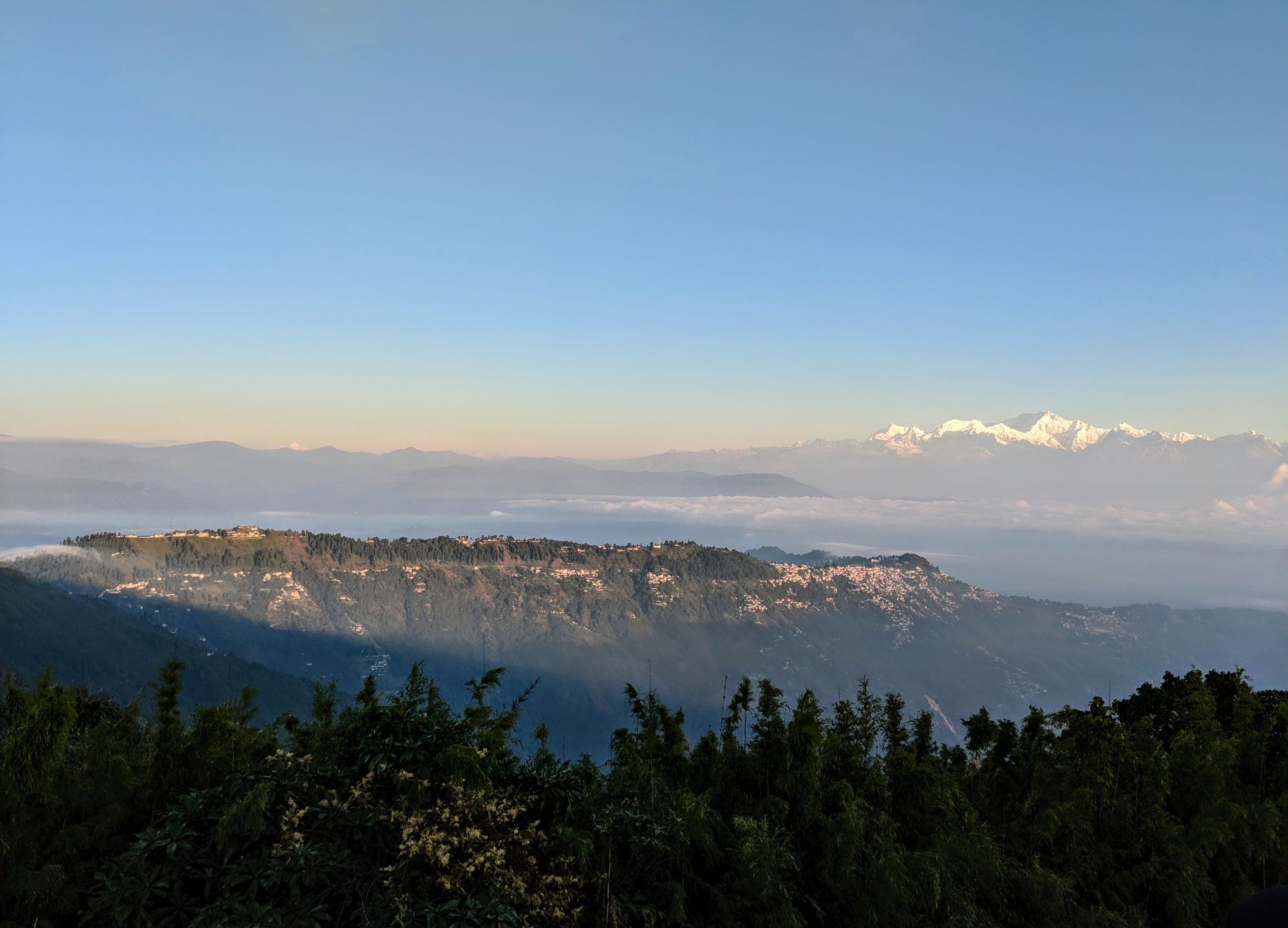 Kanchenjunga is the third highest peak in the world. It was visible from the air as a majestic mountain range above the clouds as week took flight from Assam to Bagdogra. We took a shared jeep to Darjeeling with a friendly Kannada family we met at the airport. The next day, we woke up early to climb Tiger hill, to see the golden sunrise reflecting on Kanchenjunga and Mt. Everest.