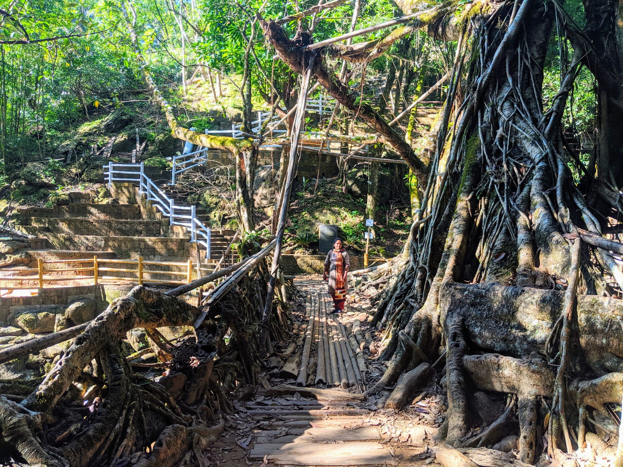 Mawlynnong was awarded the cleanest city in Asia and mom wanted to visit it. It is a small town, where the residents have vowed to keep it clean. Beautifully landscaped, it was a unique experience.