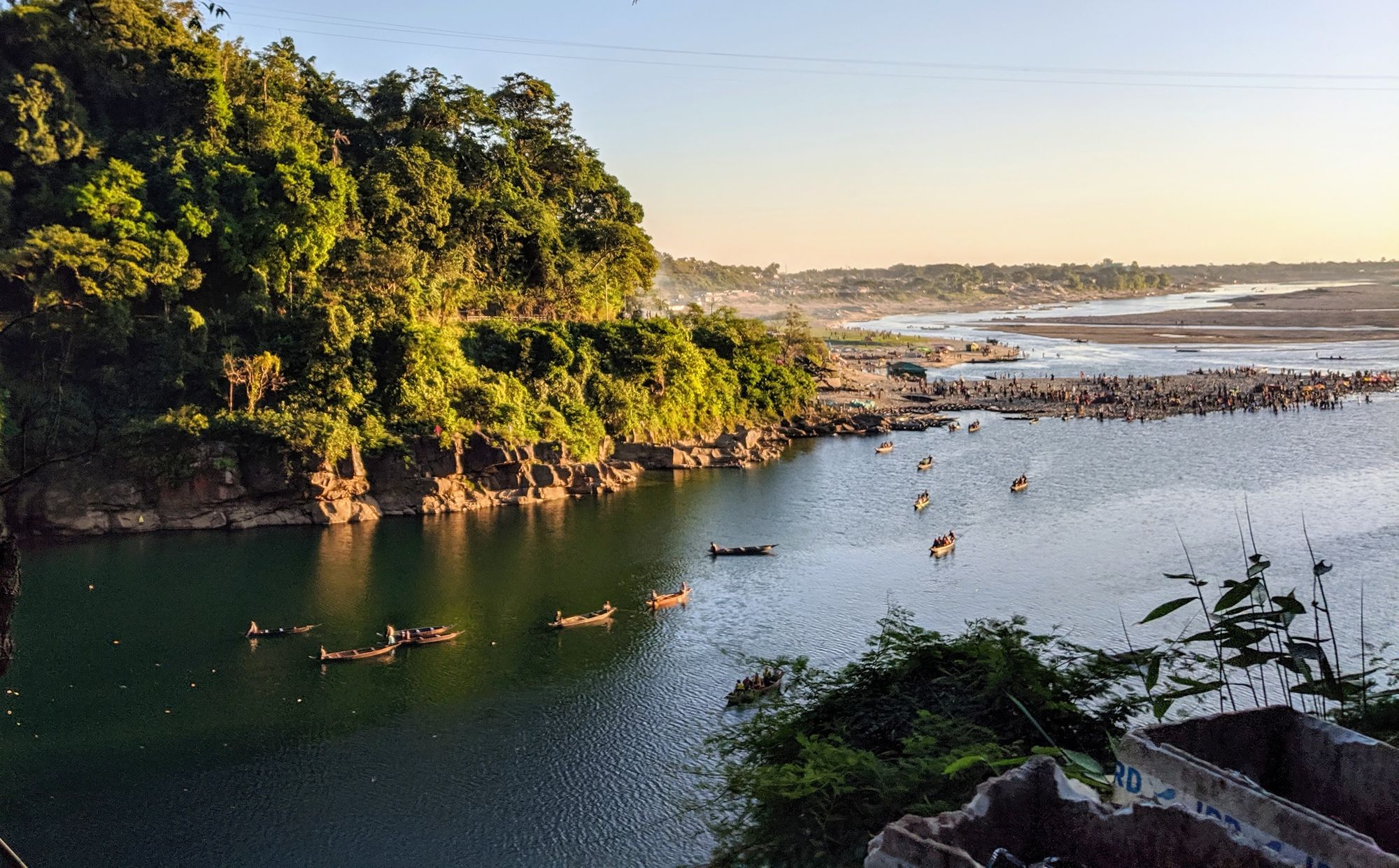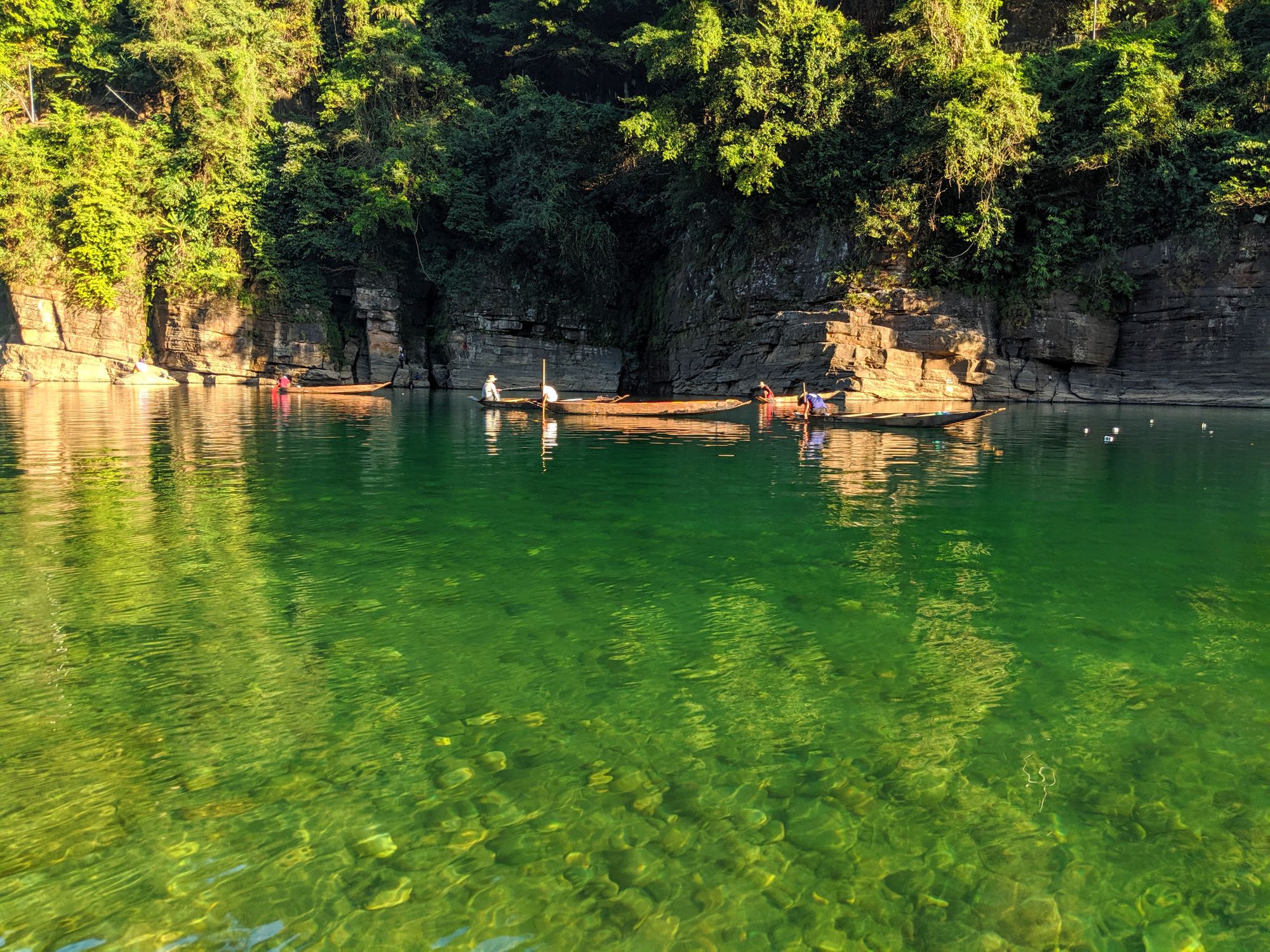 We went boating in crystal clear waters in Dowki. We could see the Bangladesh side further down the river, with more people boating there.
