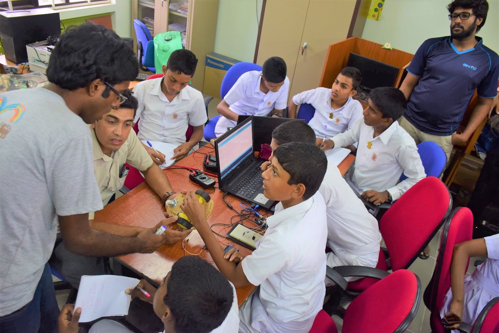 As with all developing countries, students of Sri Lanka are not exposed to the latest technologies. Students are usually exposed to programming (mostly on paper) in age 16 if only they chose an optional subject: ICT. To introduce the wonders of microprocessors and to unleash the limitless possibilities by untapping the creativity in our students, my team decided to conduct arduino robotics workshops around Sri Lanka.