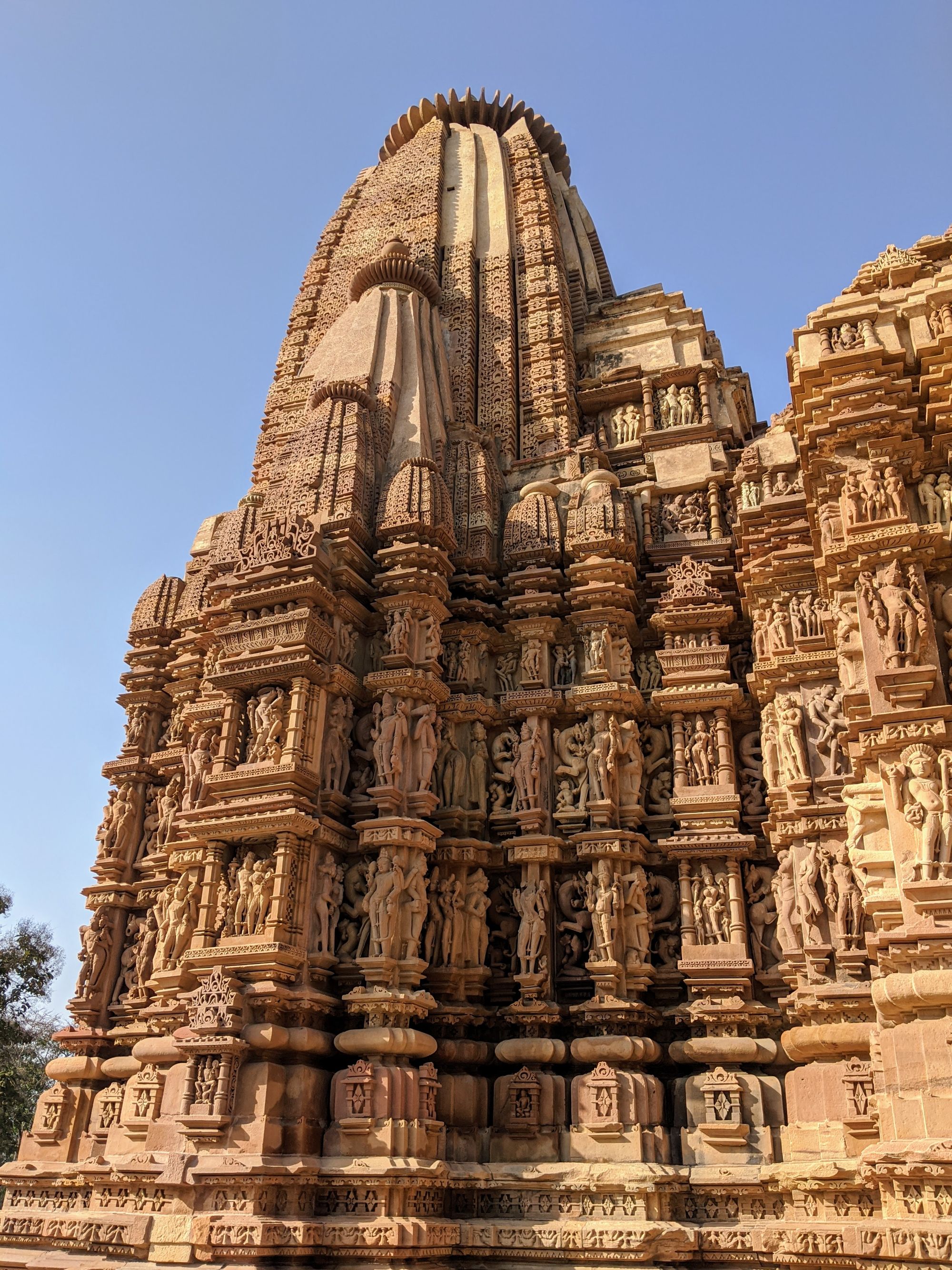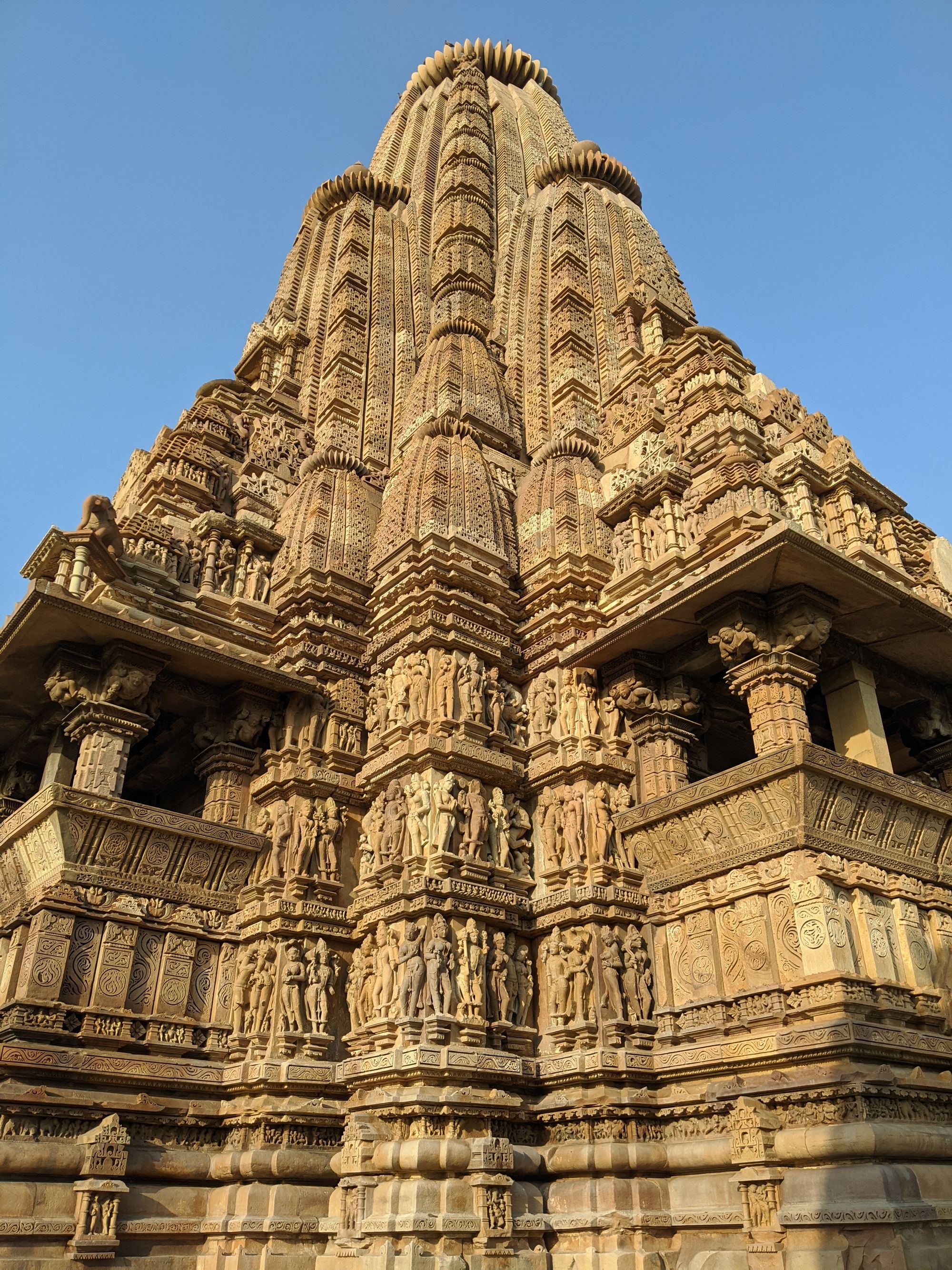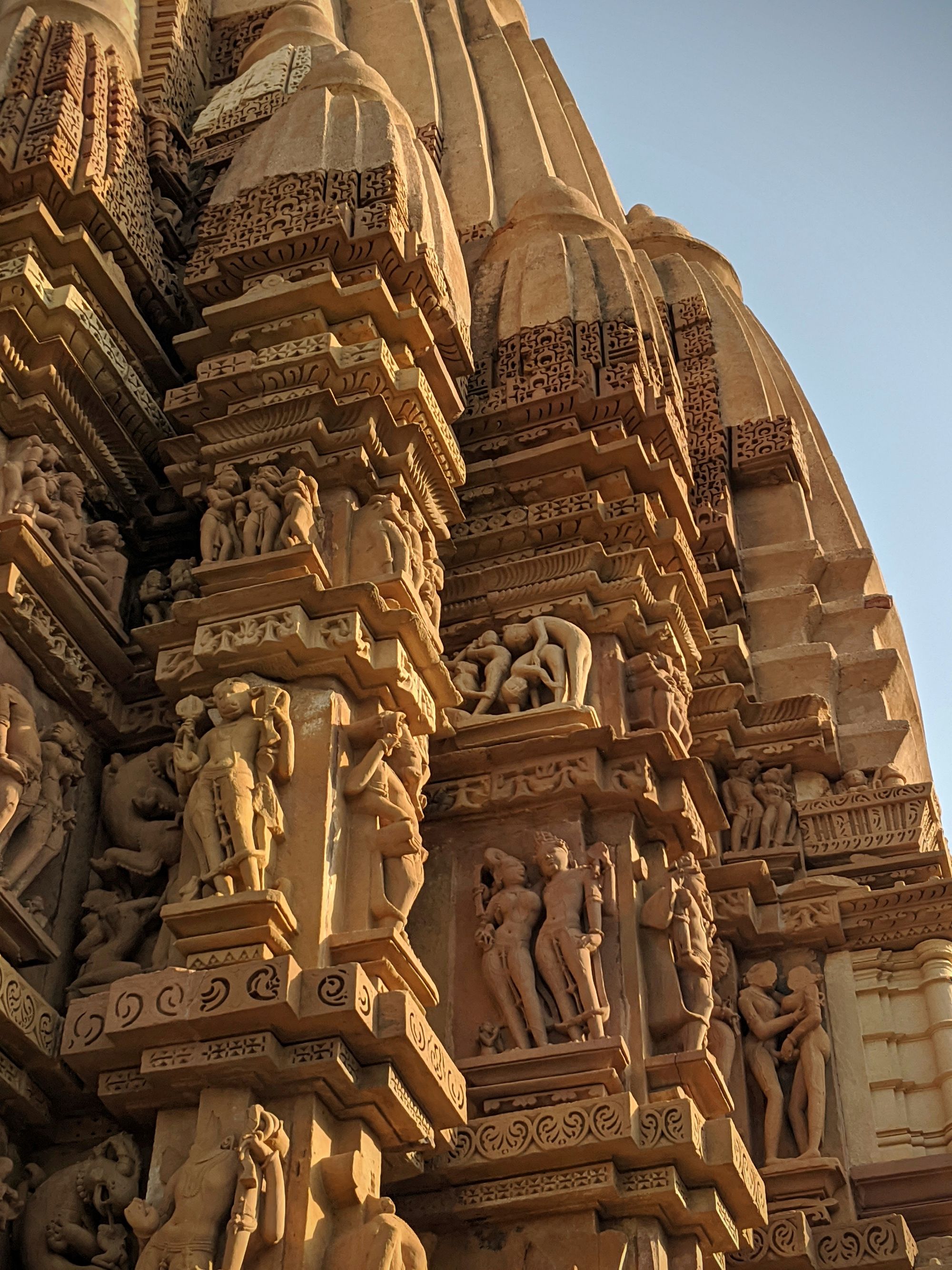 Apart from sex, Khajuraho temples have the best Hindu architecture of India, hands down. They were built in the ‘Nagara’ style, with heavily decorated central towers (sigara) and hallways around them, in contrast to the ‘Dravida’ styled southern temples. The fine details of sculptures and decorations are even better than the southern ones, IMHO. However, a comparison isn’t fair, since Khajuraho is built with red sandstone that is much softer than the granite of the southern temples, allowing more creative freedom to the sculptor.