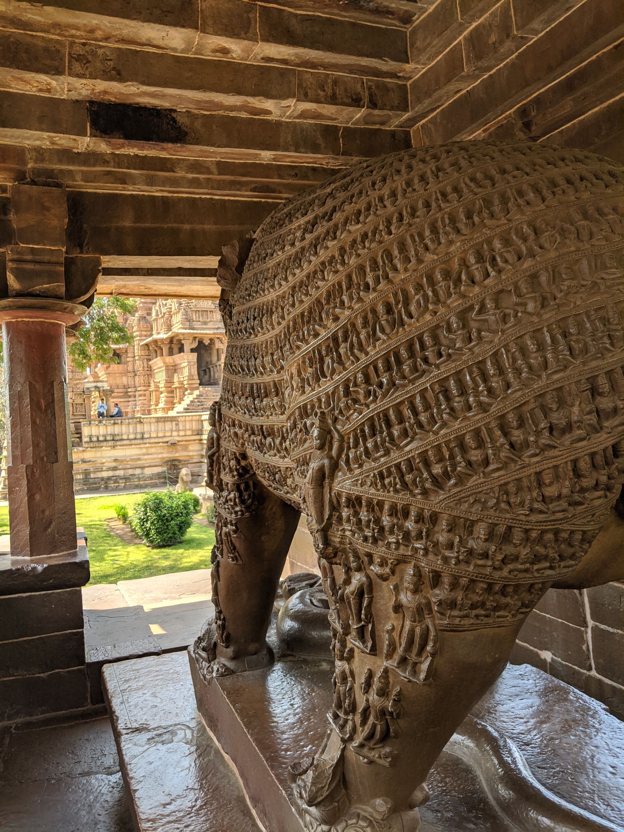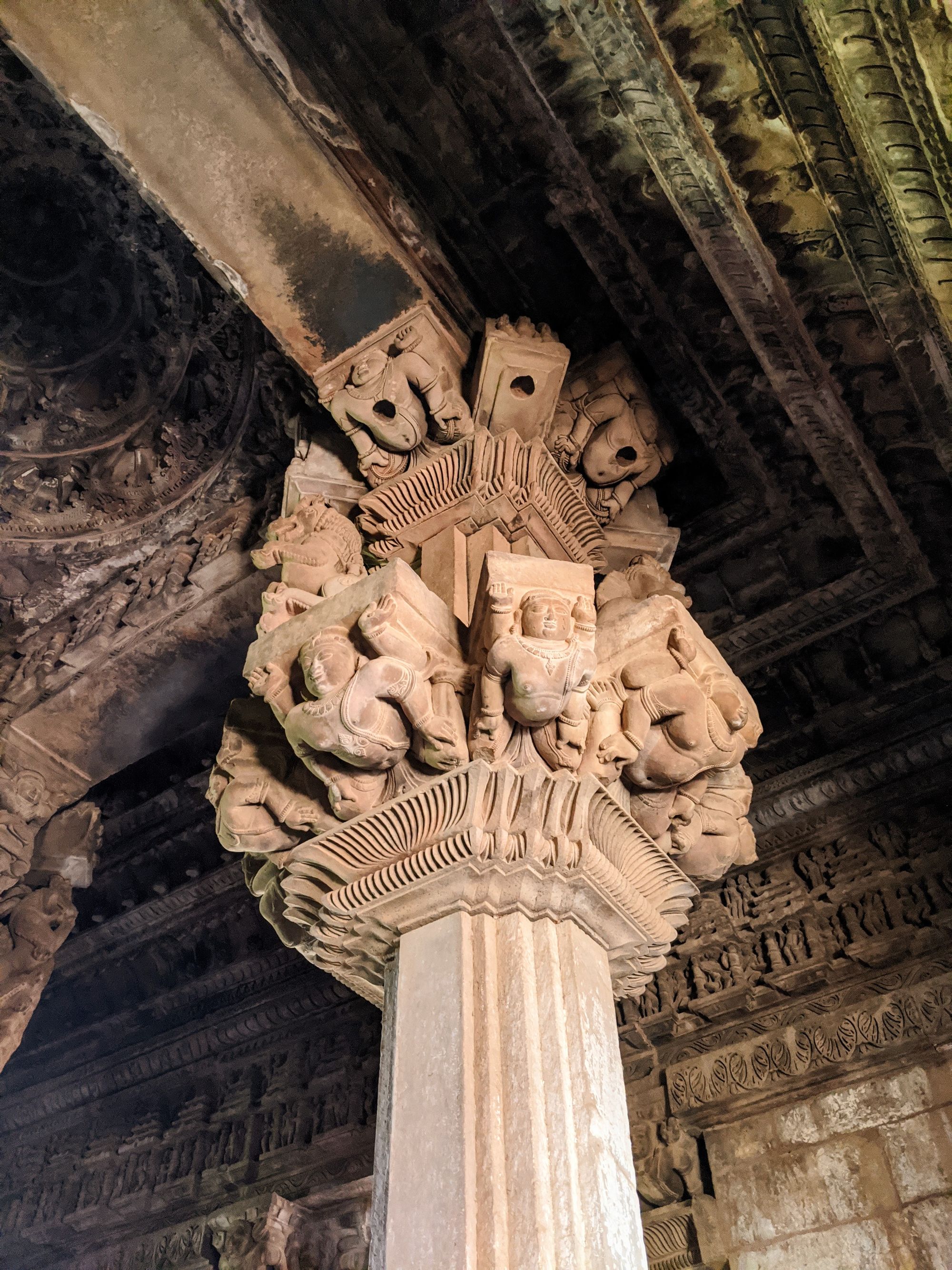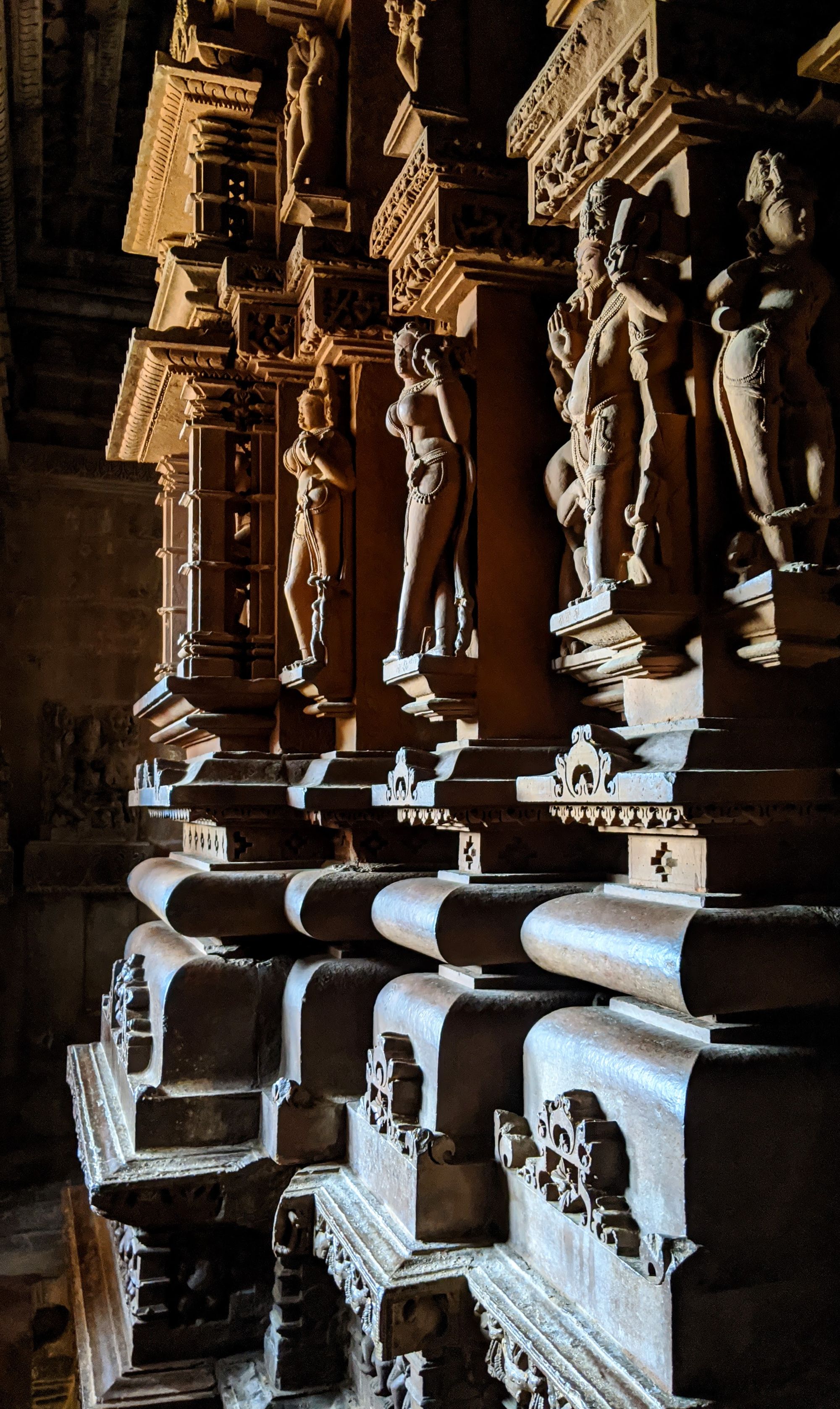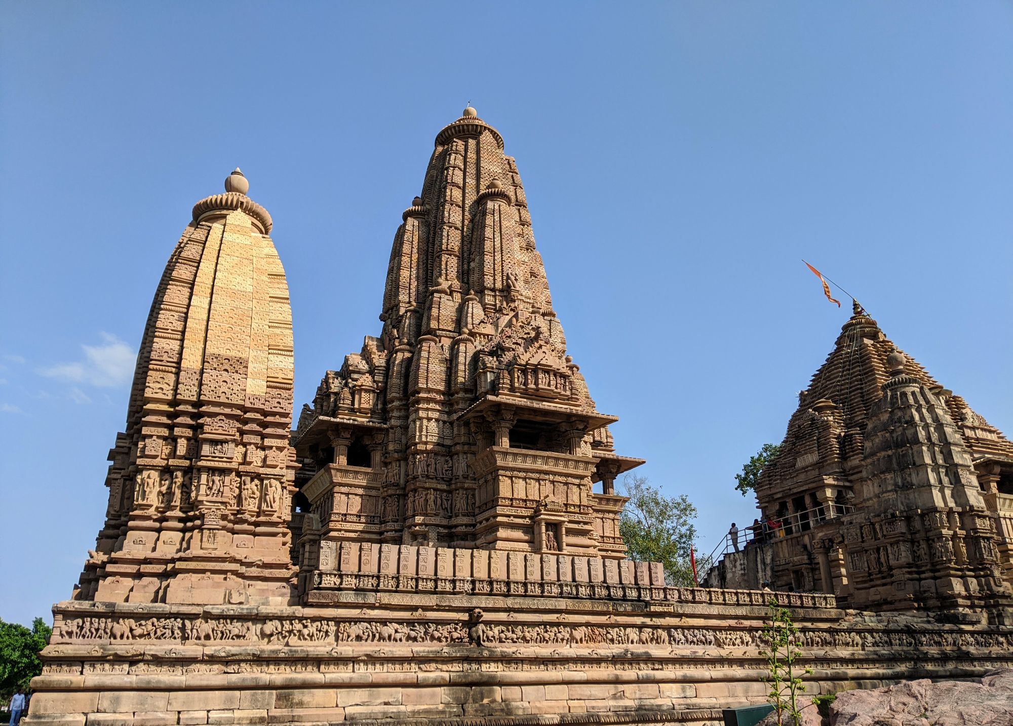 Apart from sex, Khajuraho temples have the best Hindu architecture of India, hands down. They were built in the ‘Nagara’ style, with heavily decorated central towers (sigara) and hallways around them, in contrast to the ‘Dravida’ styled southern temples. The fine details of sculptures and decorations are even better than the southern ones, IMHO. However, a comparison isn’t fair, since Khajuraho is built with red sandstone that is much softer than the granite of the southern temples, allowing more creative freedom to the sculptor.