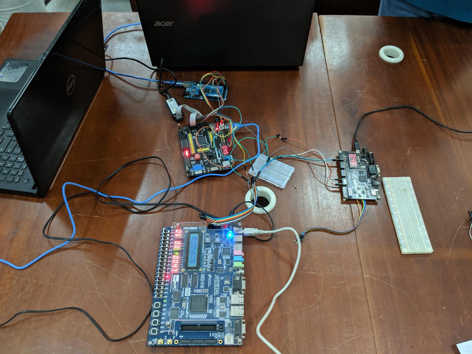 We implemented it on an Altera DE2-115 and demonstrated by sending a packet of data through three similar boards connected chained through the external bus interfaces.